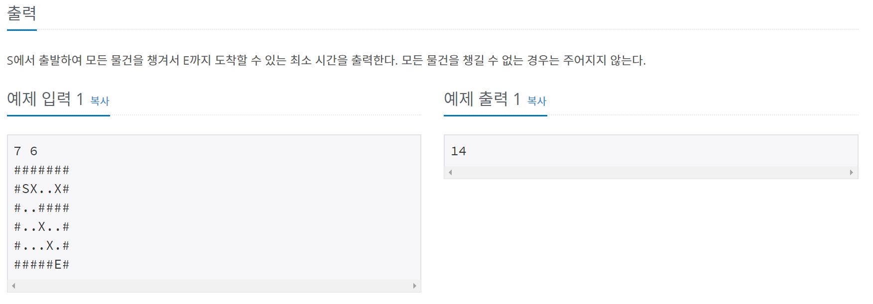 MAP에서 X를 순서대로 방문한 경로중 가장 짧은 것을 출력하는 문제이다.