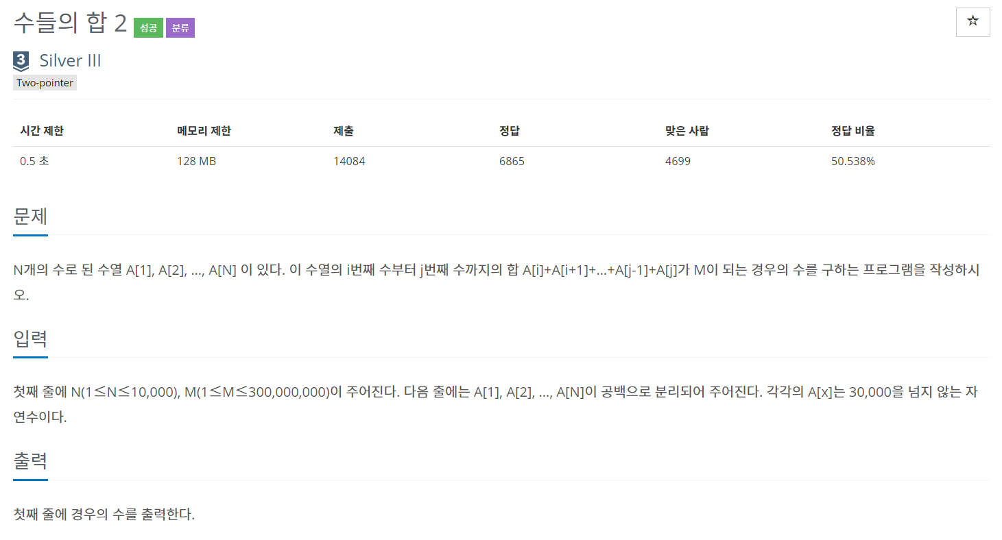의 경우에서 최적화를 할 수 있다. 아래 KOI 문제인 수들의합2는 1번 조건의 문제로 분류할 수 있다.