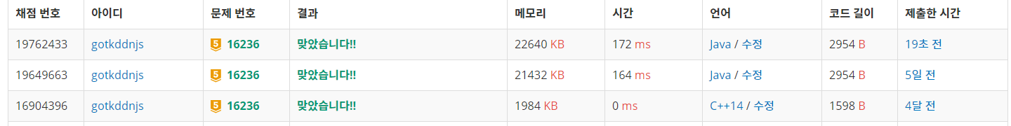당연히 푼문제인줄 알았었는데 C++로 풀었던문제여서 자바로 다시풀었다.