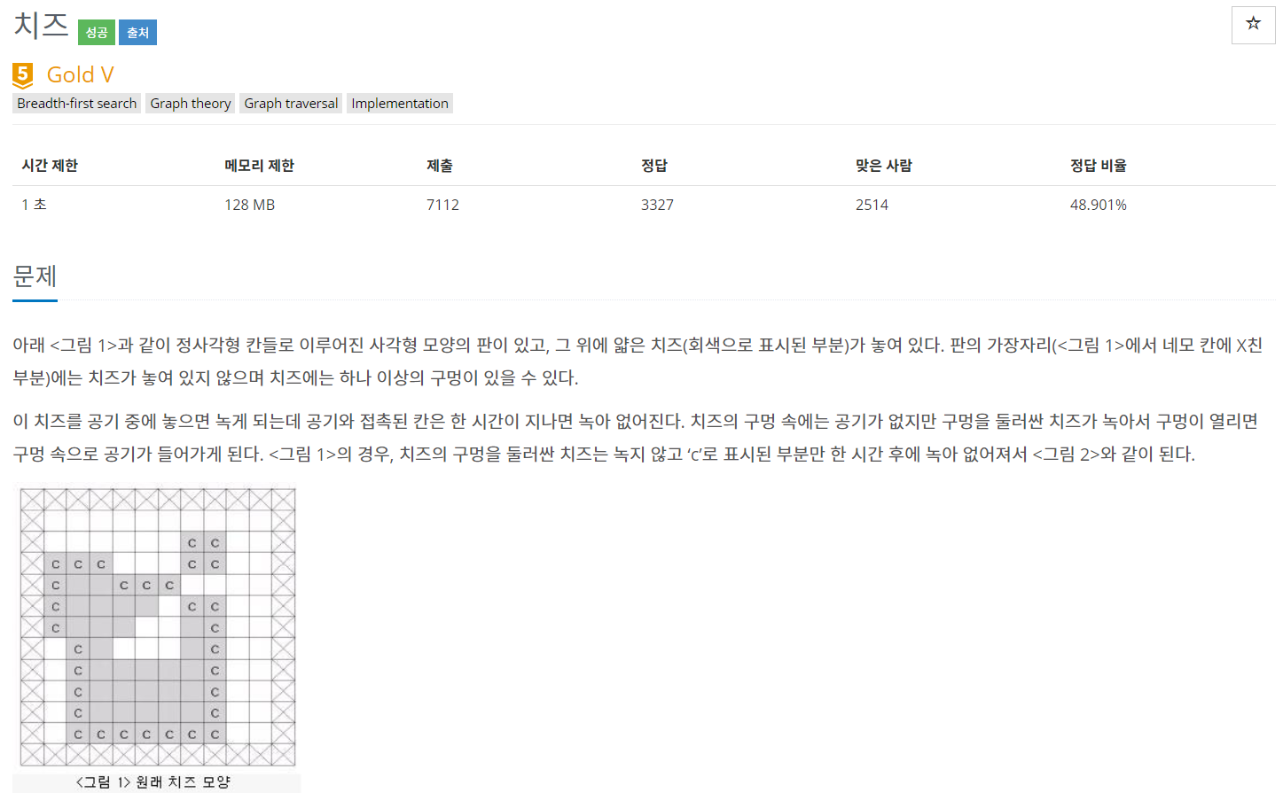0,0은 치즈가 없음이 보장되어있기에 이쪽에서 bfs를 시작해서 c를 만나면 덱에 뒤쪽에, c를만나지 않으면 덱의