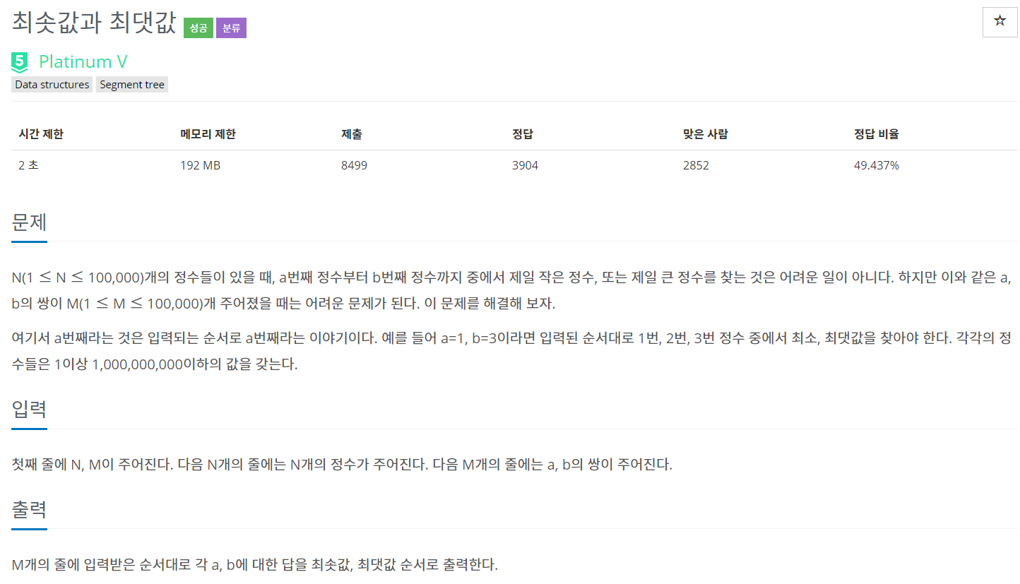 BOJ - 2357 ) 최솟값과 최댓값 본문