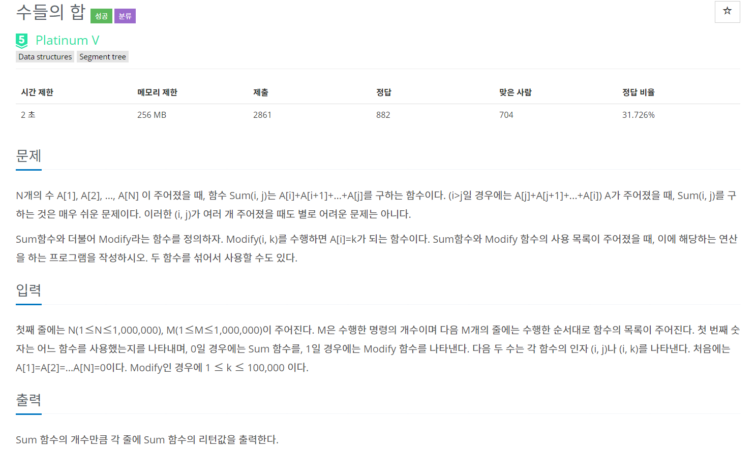 세그먼트트리의 기본꼴인 연속합을 구하는 문제이다.