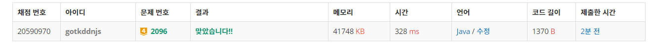 3X1 일차원 배열로 이전에서 올수있는 값중 최대 , 최소를 저장해놓고