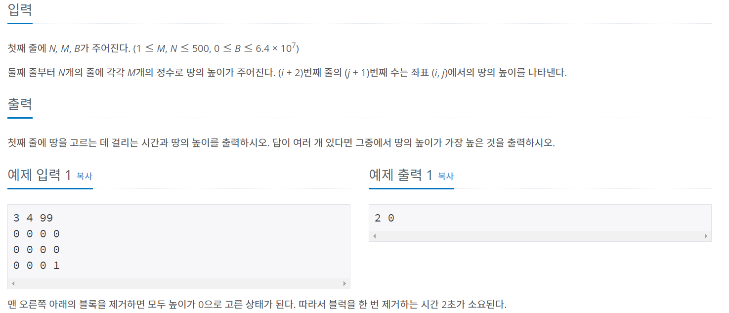 BOJ - 18111 ) 마인크래프트 본문