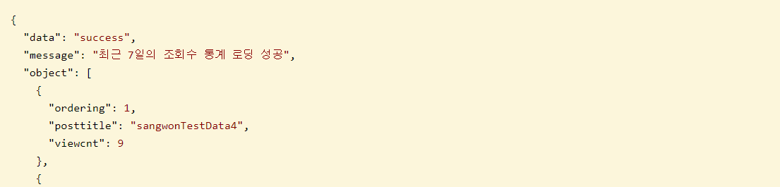 postid와 정렬되어 집계함수를 통과한 viewcnt를 얻어오기위한 두개의 getter를 적어주자.