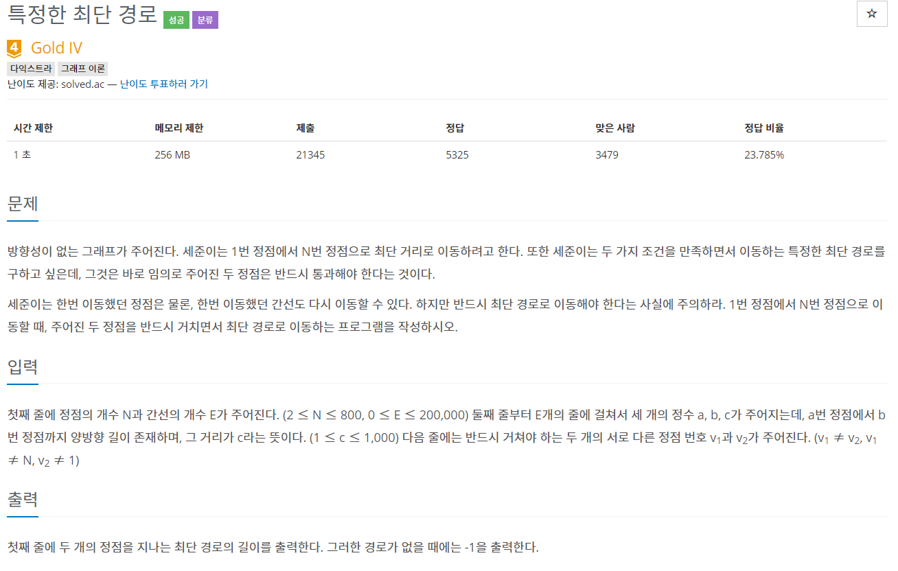 1504번: 특정한 최단 경로