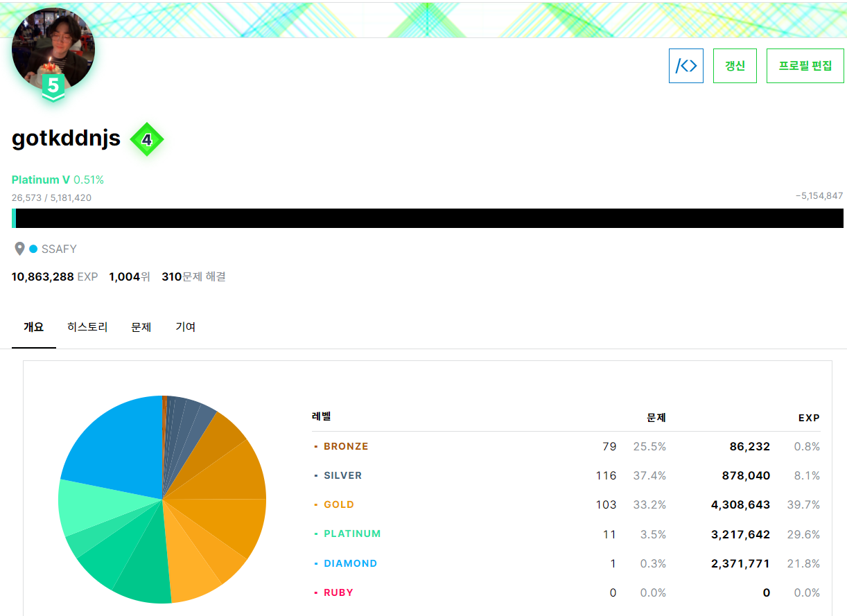 싸피에서 PS와 개인블로그를 꾸준하게 한결과 플레기로 승급하였다.