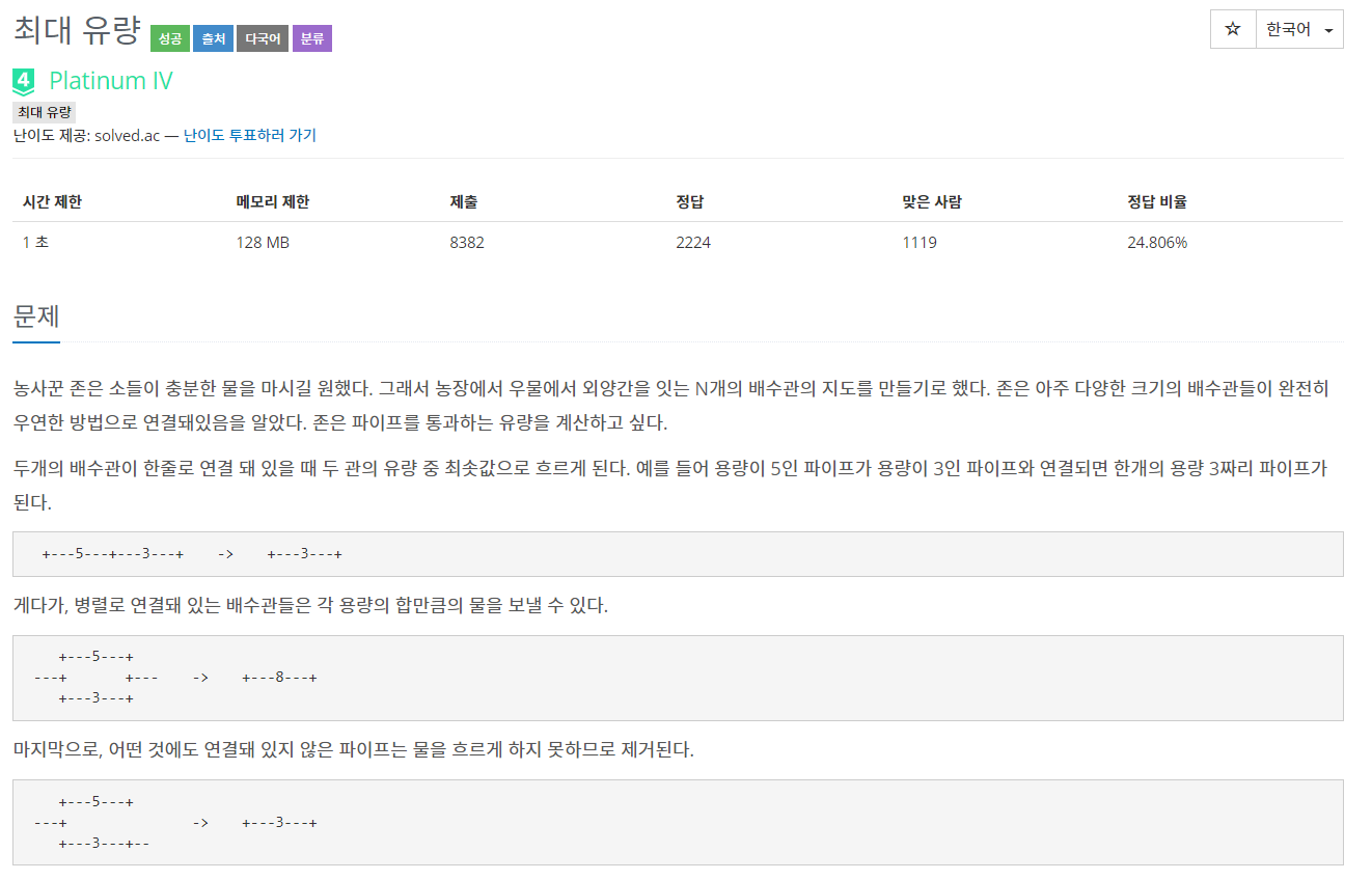 최대유량은 네트워크에서 얼만큼 많이 유량을 흘려보낼수있는지를 계산하는 문제이다.