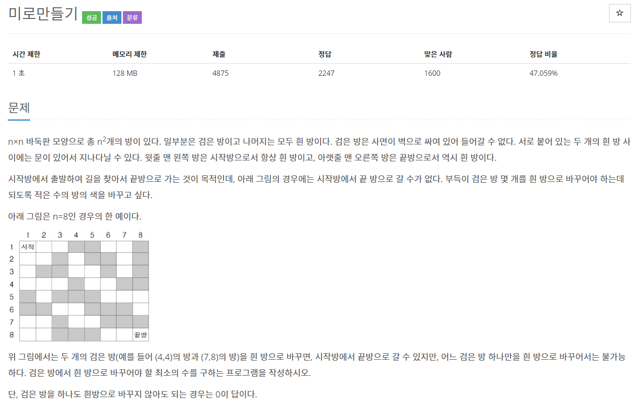 BOJ - 2665 ) 미로만들기 본문