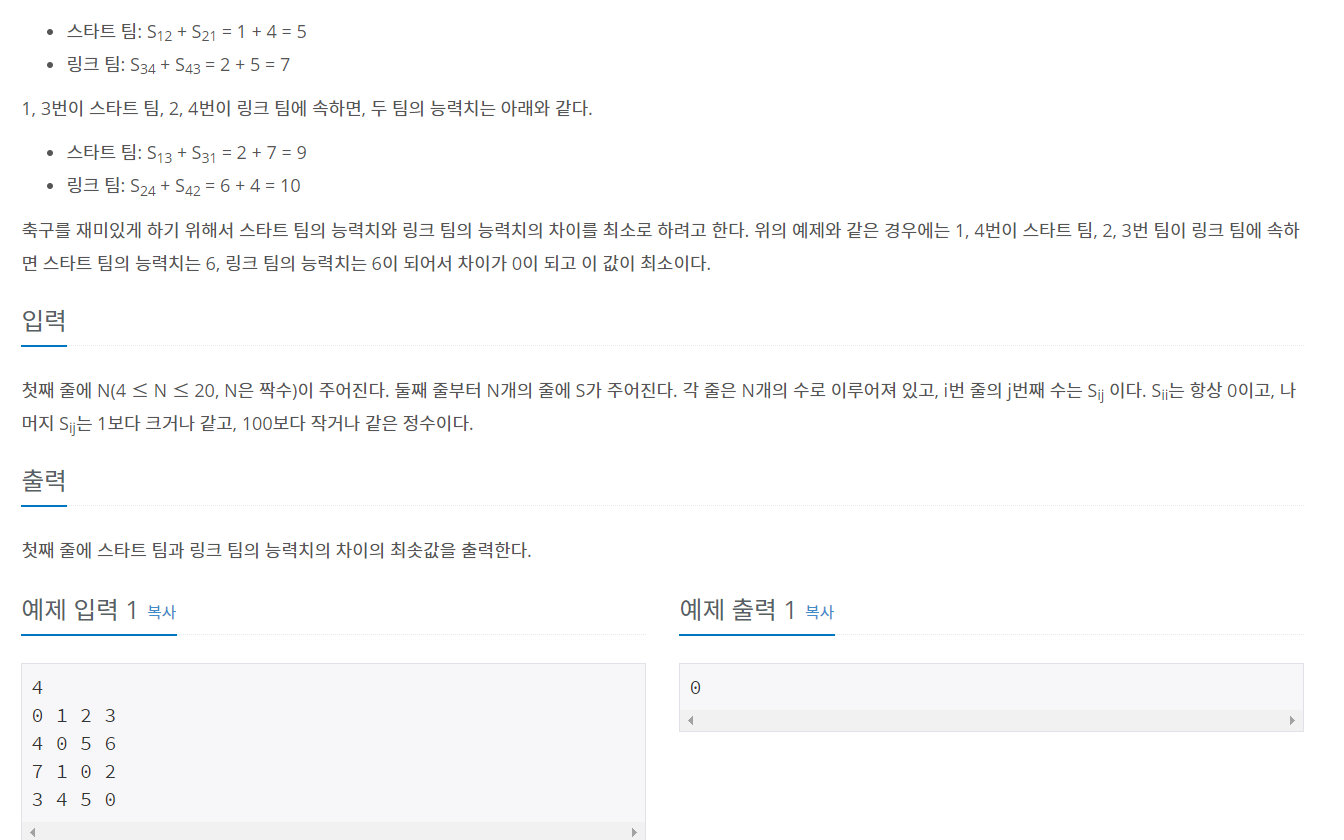 N명이 속한 축구팀을 N/2 N/2씩 나누기위해 비트연산을 이용한다.