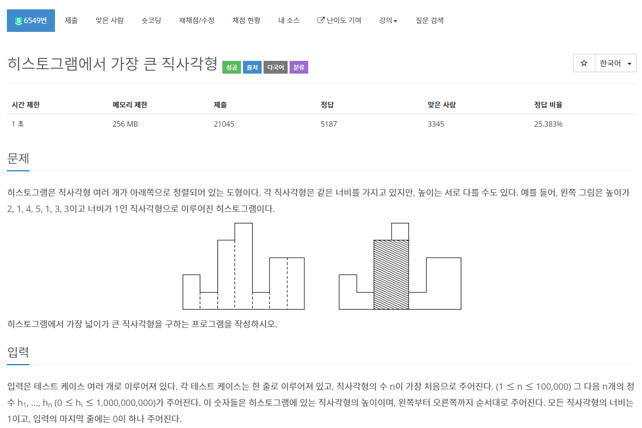 그 높이는 입력으로 들어온 것들중 한개일 것이다. 너비는 적당한 구간일 것이고,