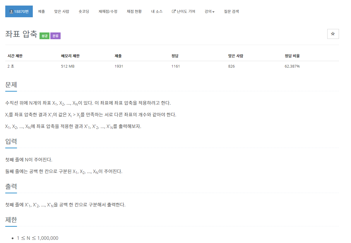 18870번: 좌표 압축