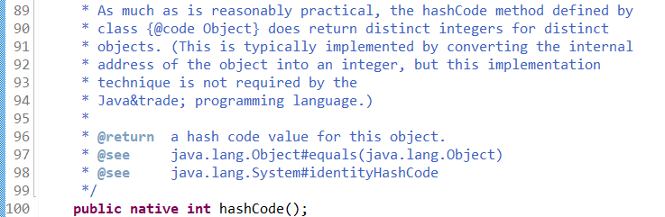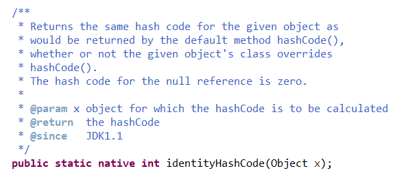 즉 객체가 하나의 정수값으로 매핑이 되는과정이다. 다시 돌아와서 List_A와 List_B가 Hashmap에있다는것은 저 Key.hashCode()에서 넘어오는 값이 똑같다는 이야기인데, 최상위인 Object 클래스로 넘어가 hashCode()를 호출했을때 어떤 값이 지정되는지 확인해보자..