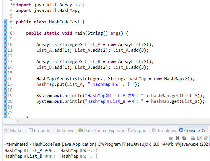 HashMap은 잘못없이 hashcode 값만으로 적절하게 자료들을 관리했기에 List_B가 Hashmap에 있다고 던진것이다 !