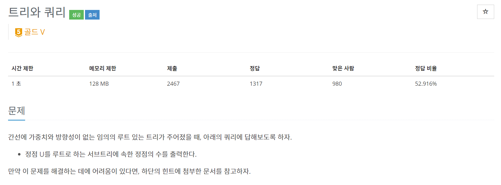 https://www.acmicpc.net/problem/15681