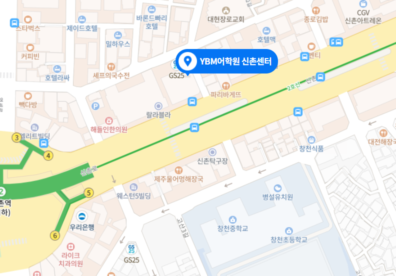 위치는 신촌역 4번출구에서 쭉 나와서 어학원건물에 지하에있다.