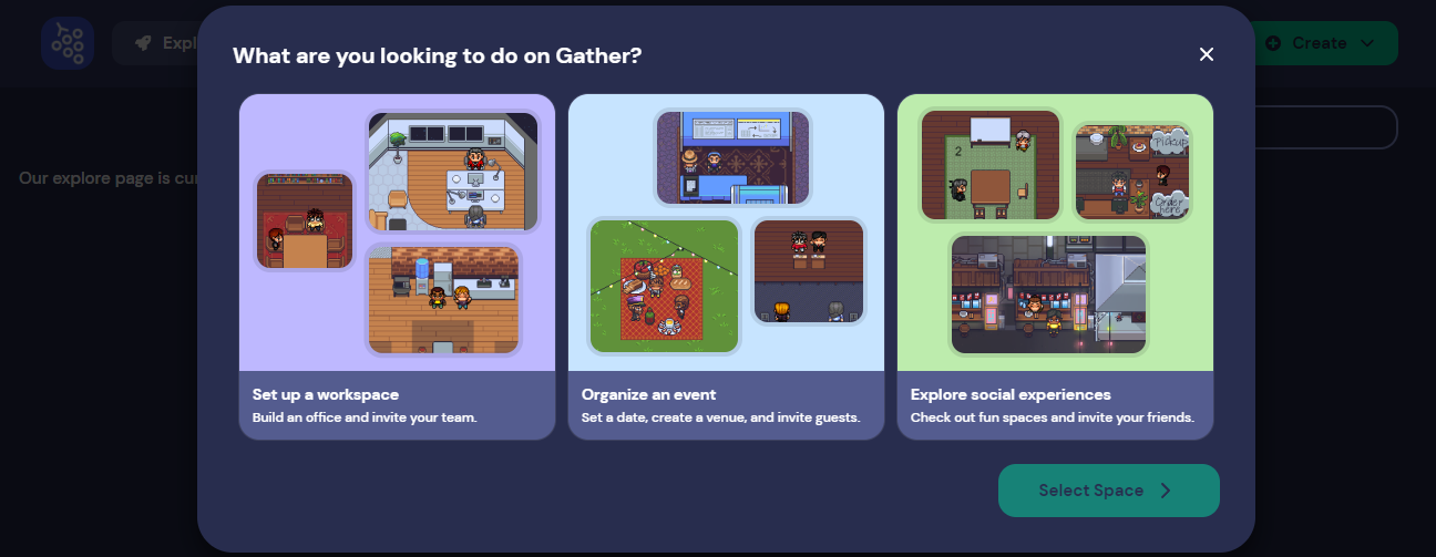 Centered around fully customizable spaces, Gather makes spending time with your communities just as easy as real life.