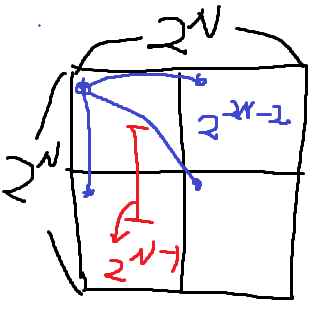 길이가 2^N인 사각형에서 1,2,3,4 분면을 결정한다면, 재귀적으로 상황이 반복됨을 알수있다.