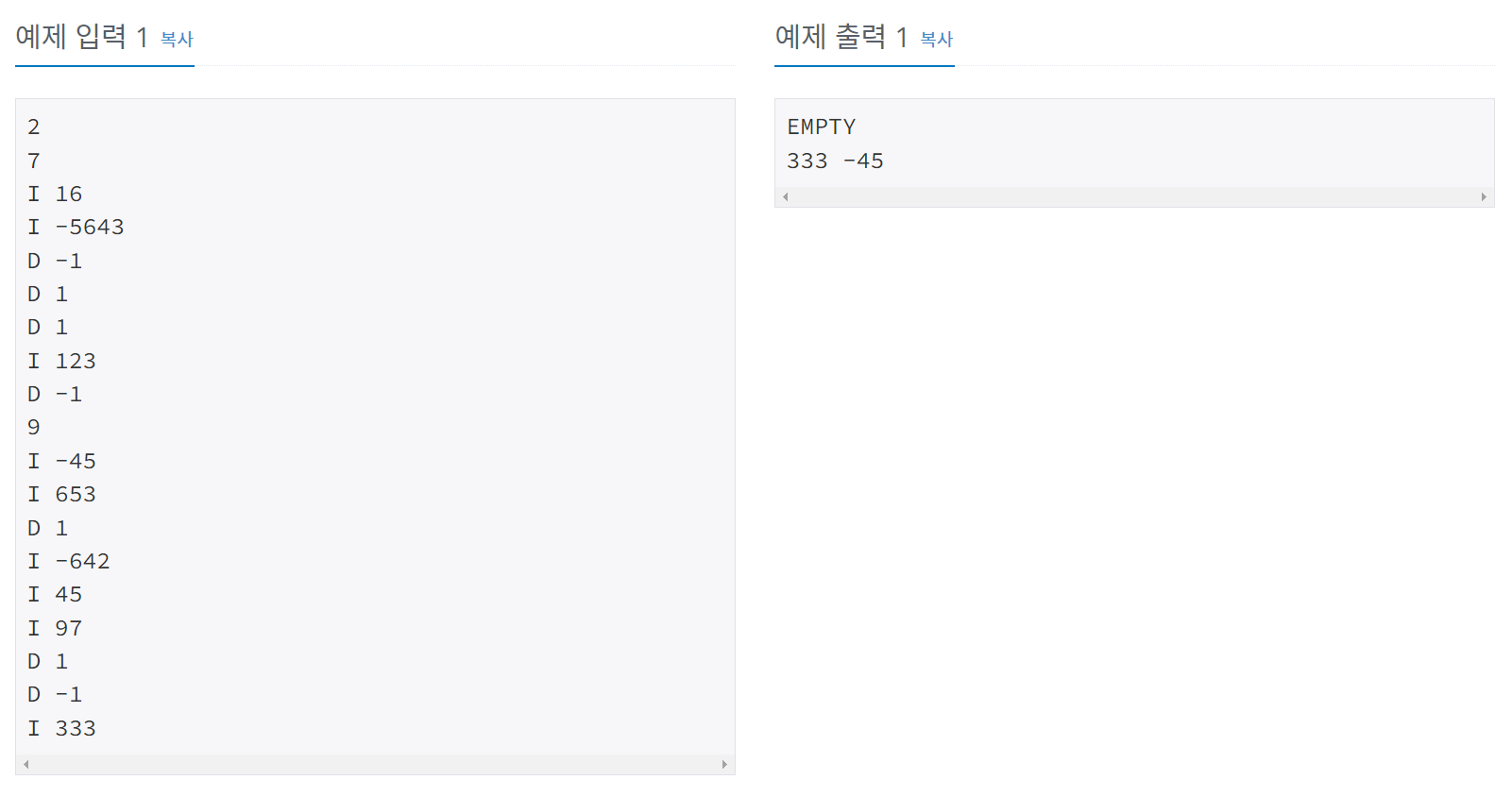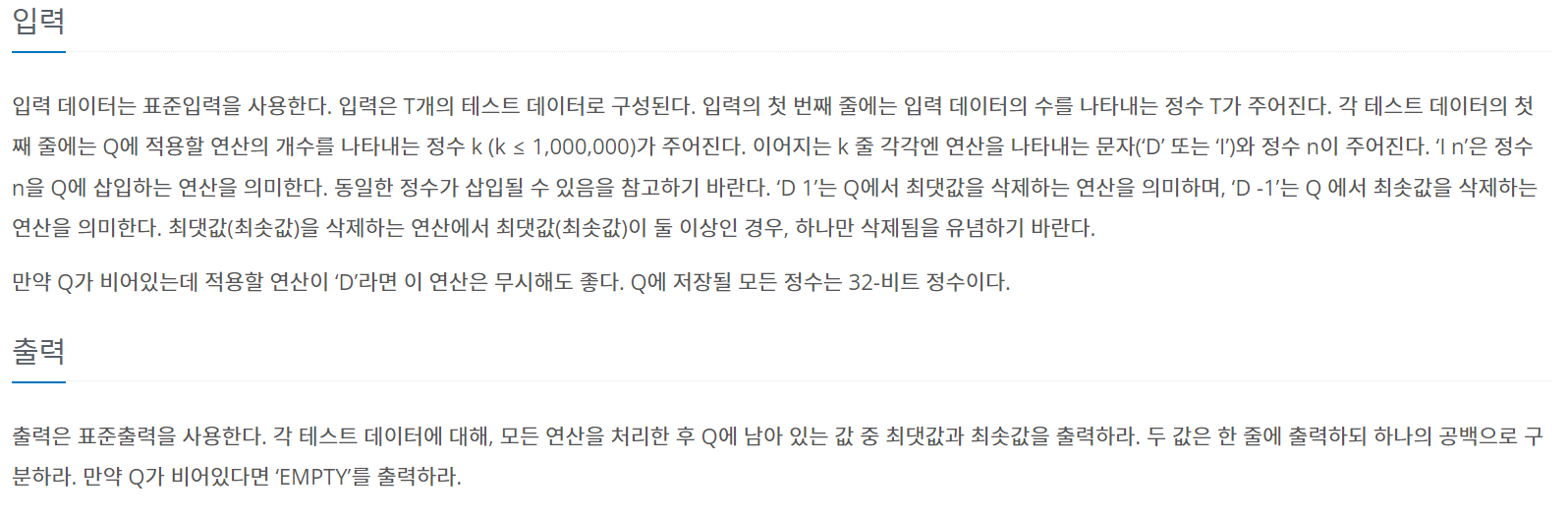 BOJ - 7662 ) 이중 우선순위 큐 본문