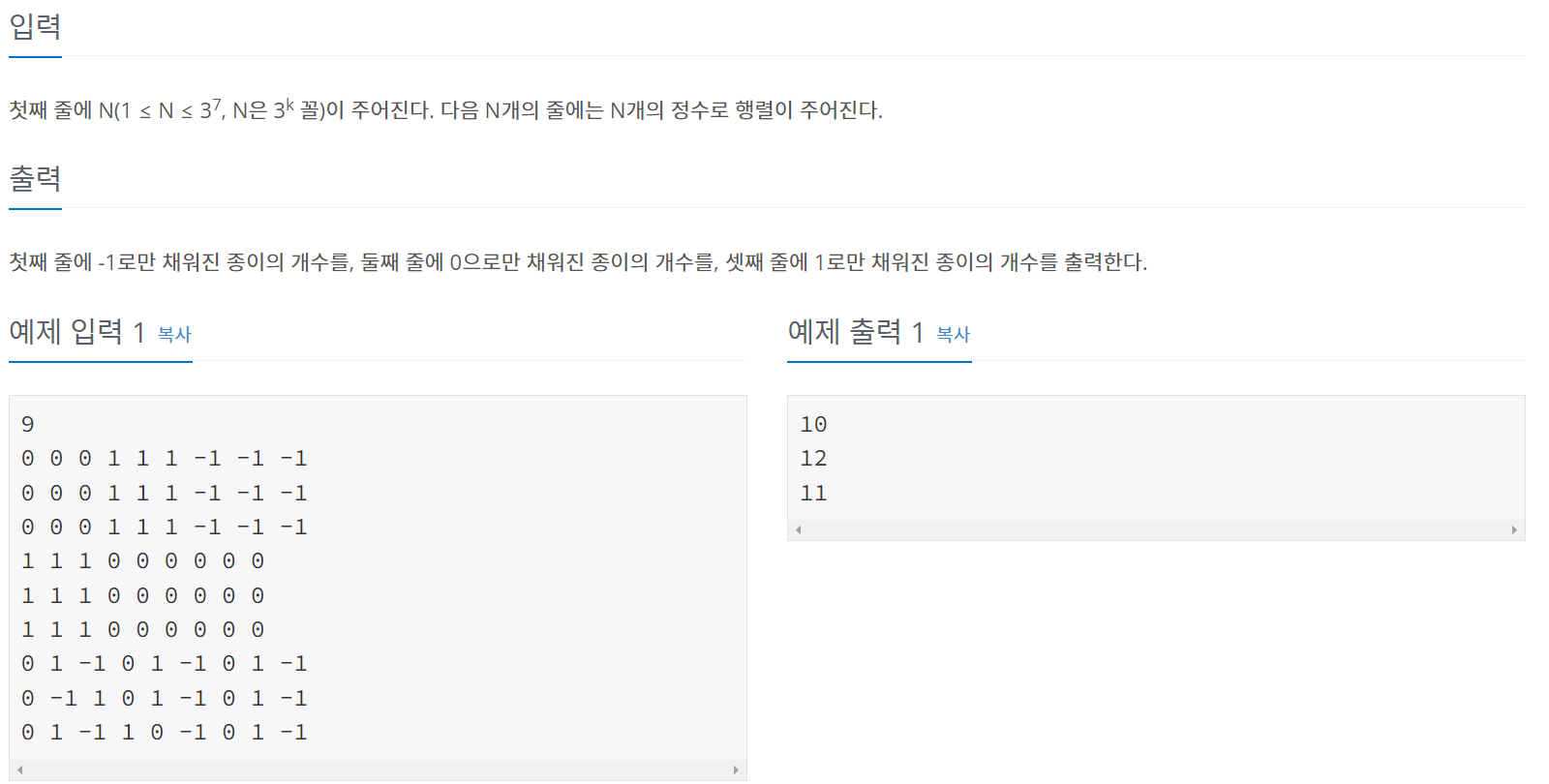 https://www.acmicpc.net/problem/1780
