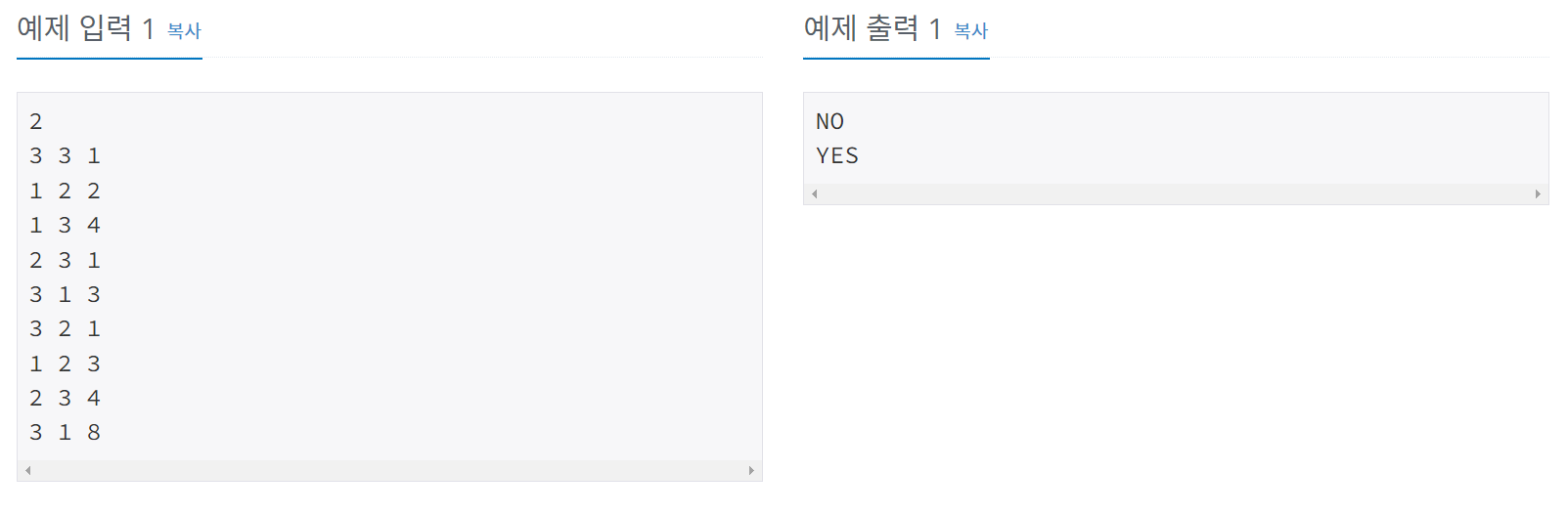 // 모든 노드를 시작점으로 SPFA를 실행하여 음수 사이클이 존재하는지 파악