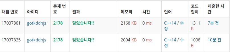 같은 길이의 경로를 가진 곳을 탐험할때 Queue에 똑같은 좌표가 두번들어가는 경우가 발생하여