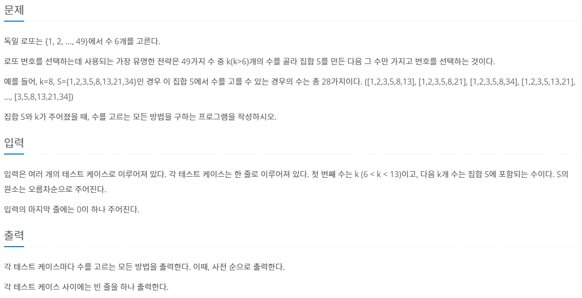 https://www.acmicpc.net/problem/6603