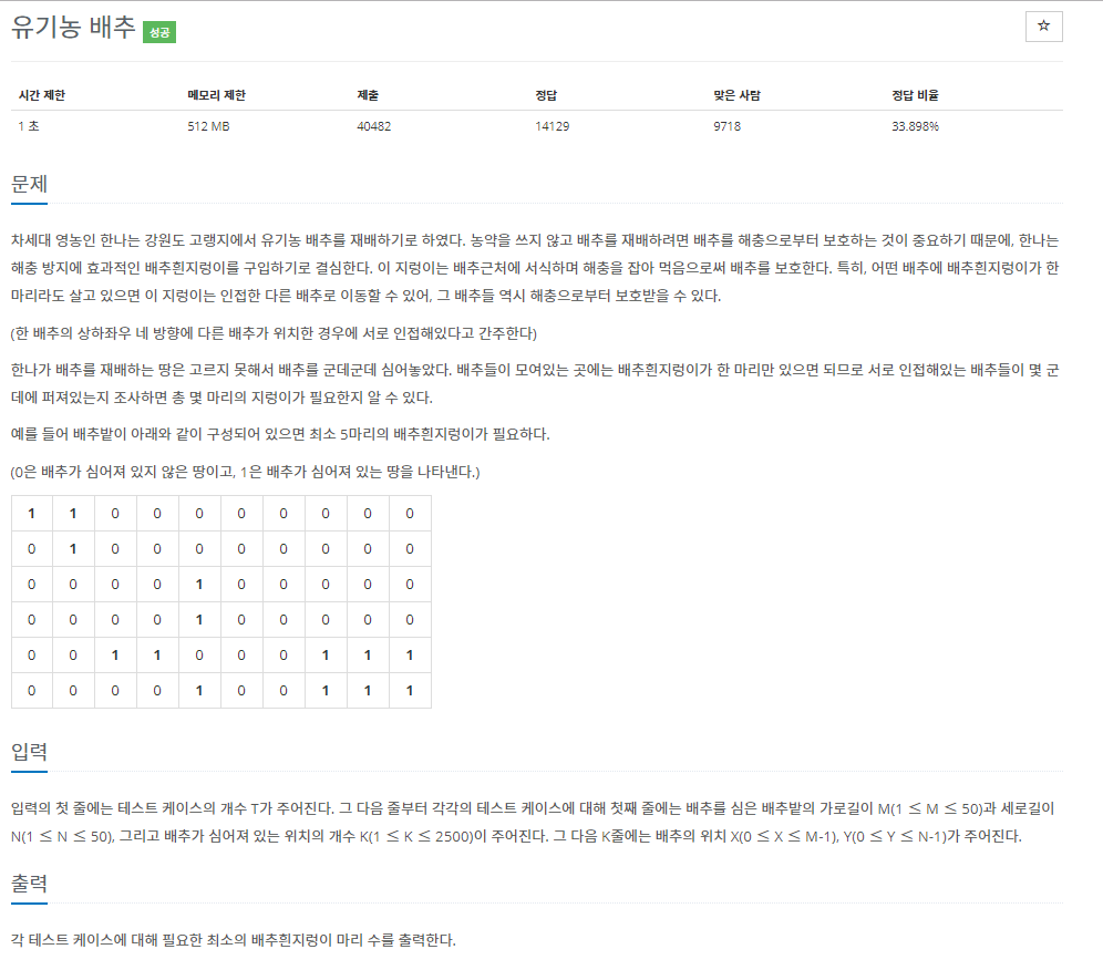 BOJ - 1012 ) 유기농 배추 본문