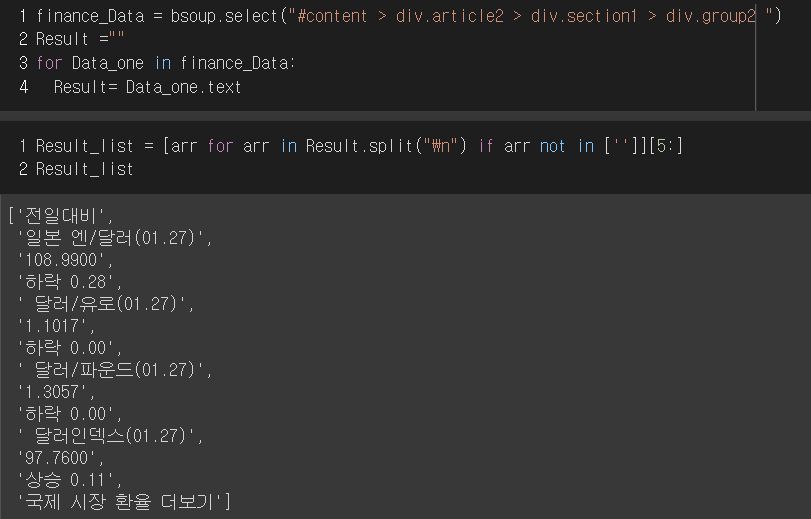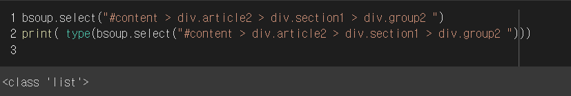 를통하여 단순 string의 type이 바뀐것을 알수있다. 이제 원하는 태그에 접근하여서 정보를 가져오면 된다.