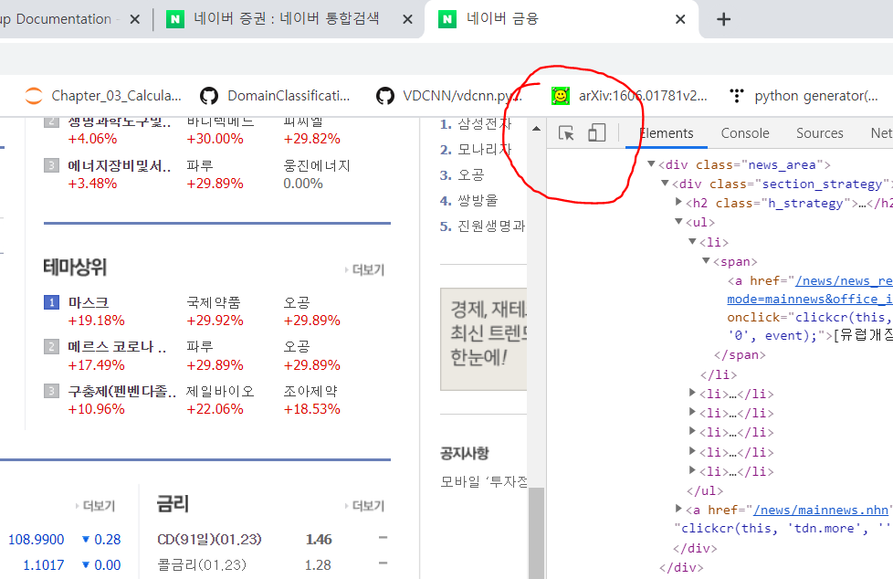 페이지내에서 어떤 한 정보를 찾기 위해서 개발자 도구를 켜주자(F12)