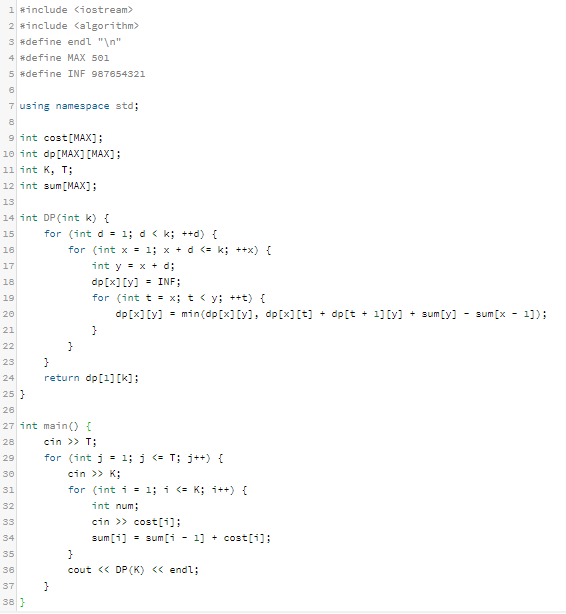 2. cost[i] 배열은 주어진 파일을 합치는 비용을 저장하는 배열이다.