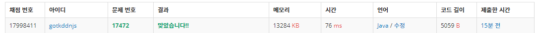 조건이 많아서 까다롭지만, 제약조건이 충분히 작아서 시간초과의 걱정은 적었던..