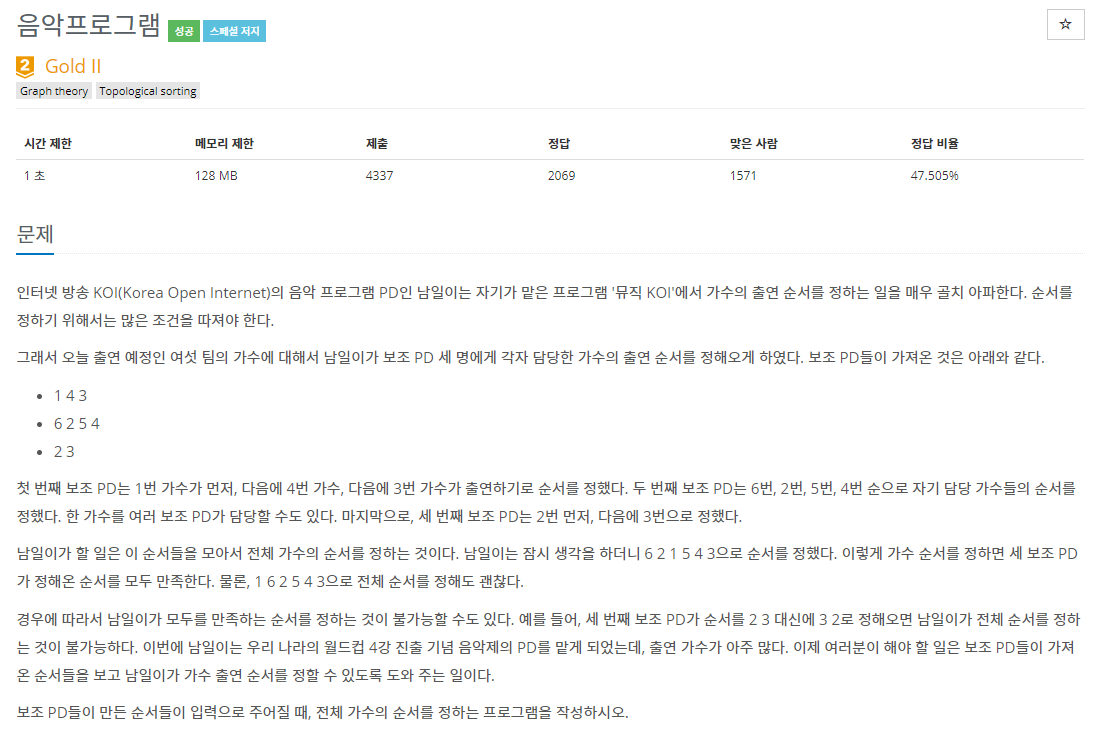 음악프로그램에 N명의 참가자가 일부 순서가 정해져있을때에 서로다른 M가지의 일부순서를 만족하는