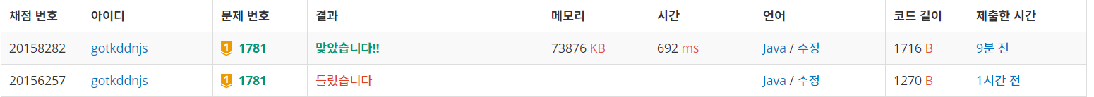 따라서 같은 시간이 만났을때 내가 이전에 풀었던 것들중에서 가장작은것과 현재 같은시간에 만나서