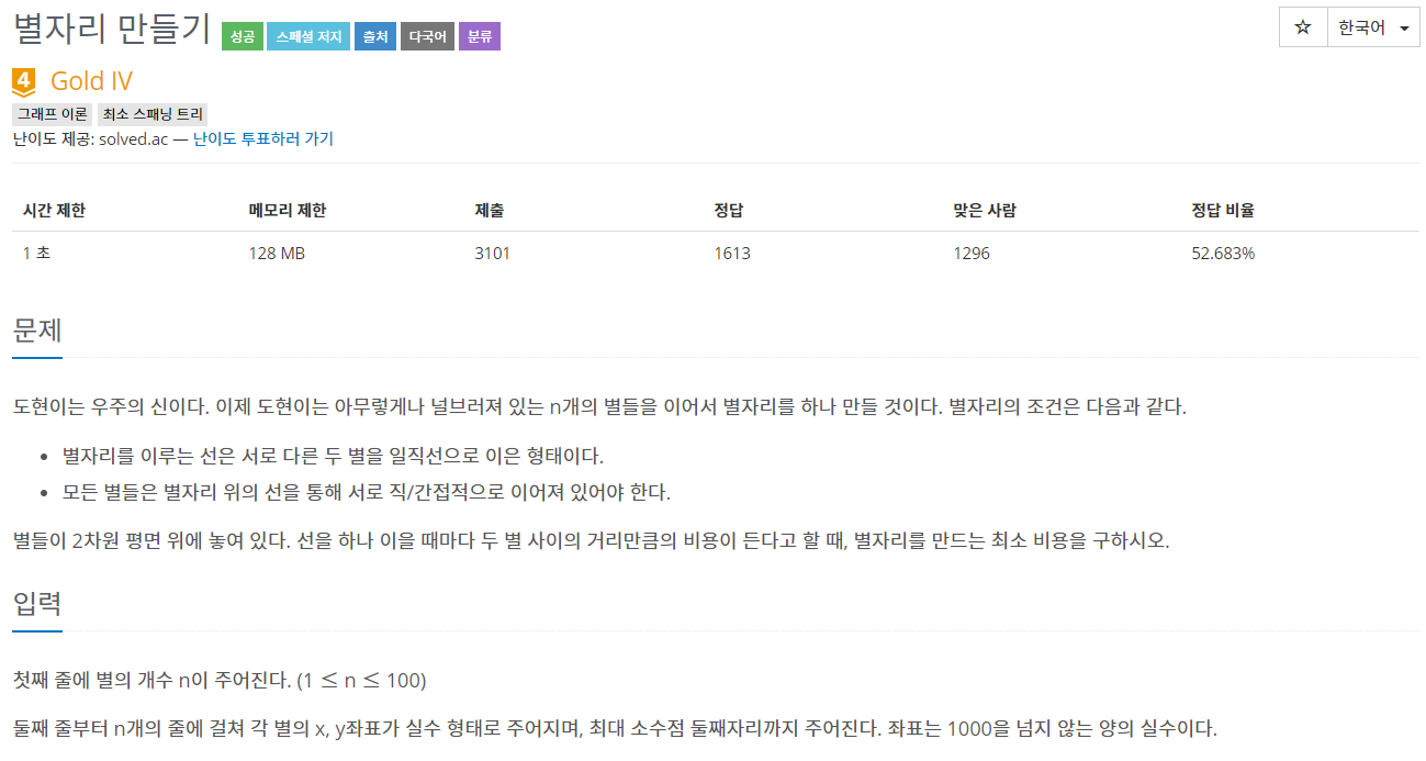BOJ - 4386 ) 별자리 만들기