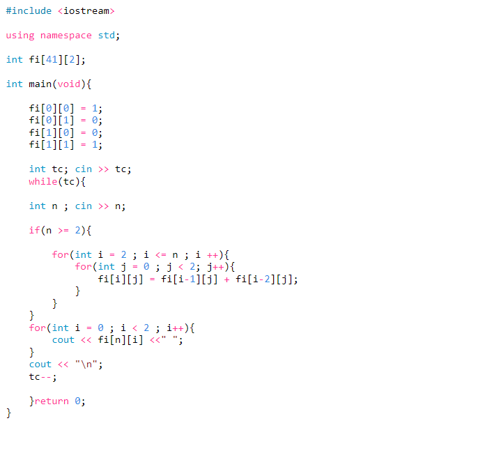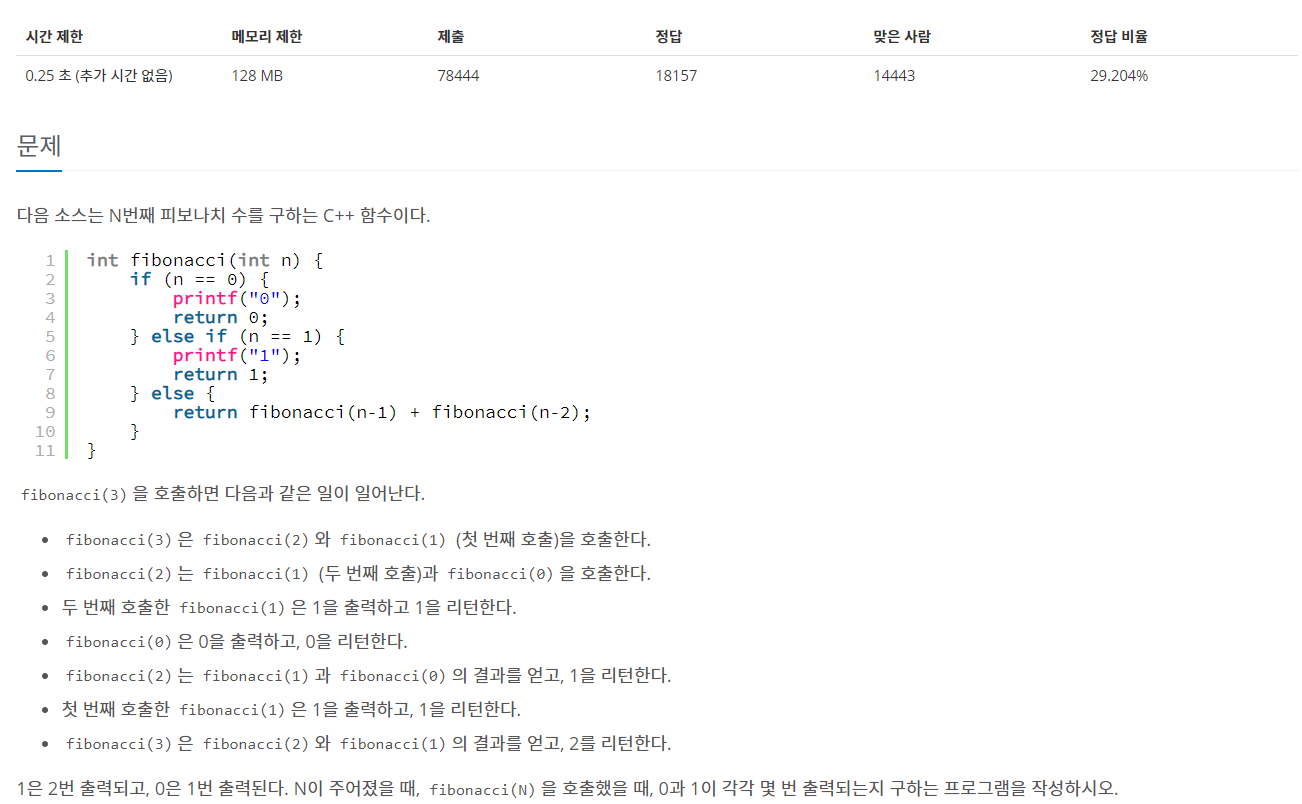 피보나치 함수에서 0과 1이 몇번 출력되었는지 출력하는 문제이다.