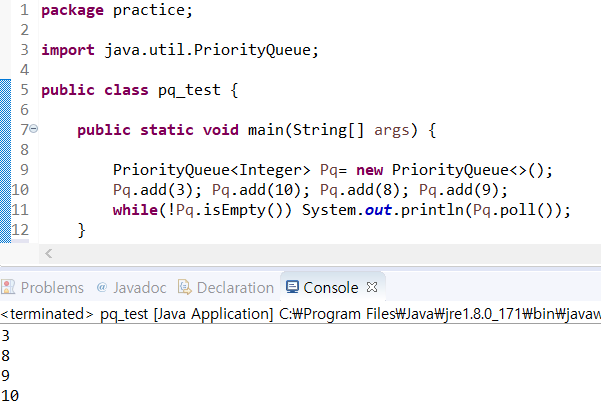 PriorityQueue Pq= new PriorityQueue<>(InitPriority_queue_size , Comparator 객체);