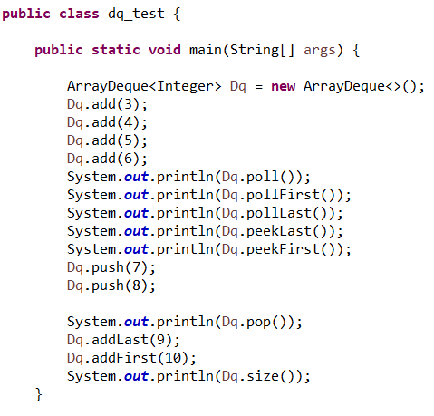 ArrayDeque < Class > 변수이름 = new ArrayDeque<>(InitDeque_size);