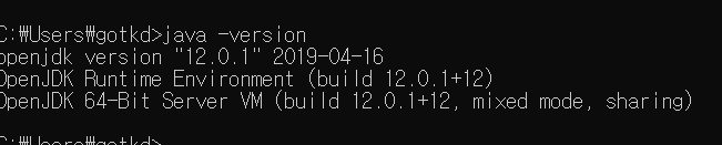 위처럼 12버전의 자바를 잘 잡은것을 확인 할 수있다.